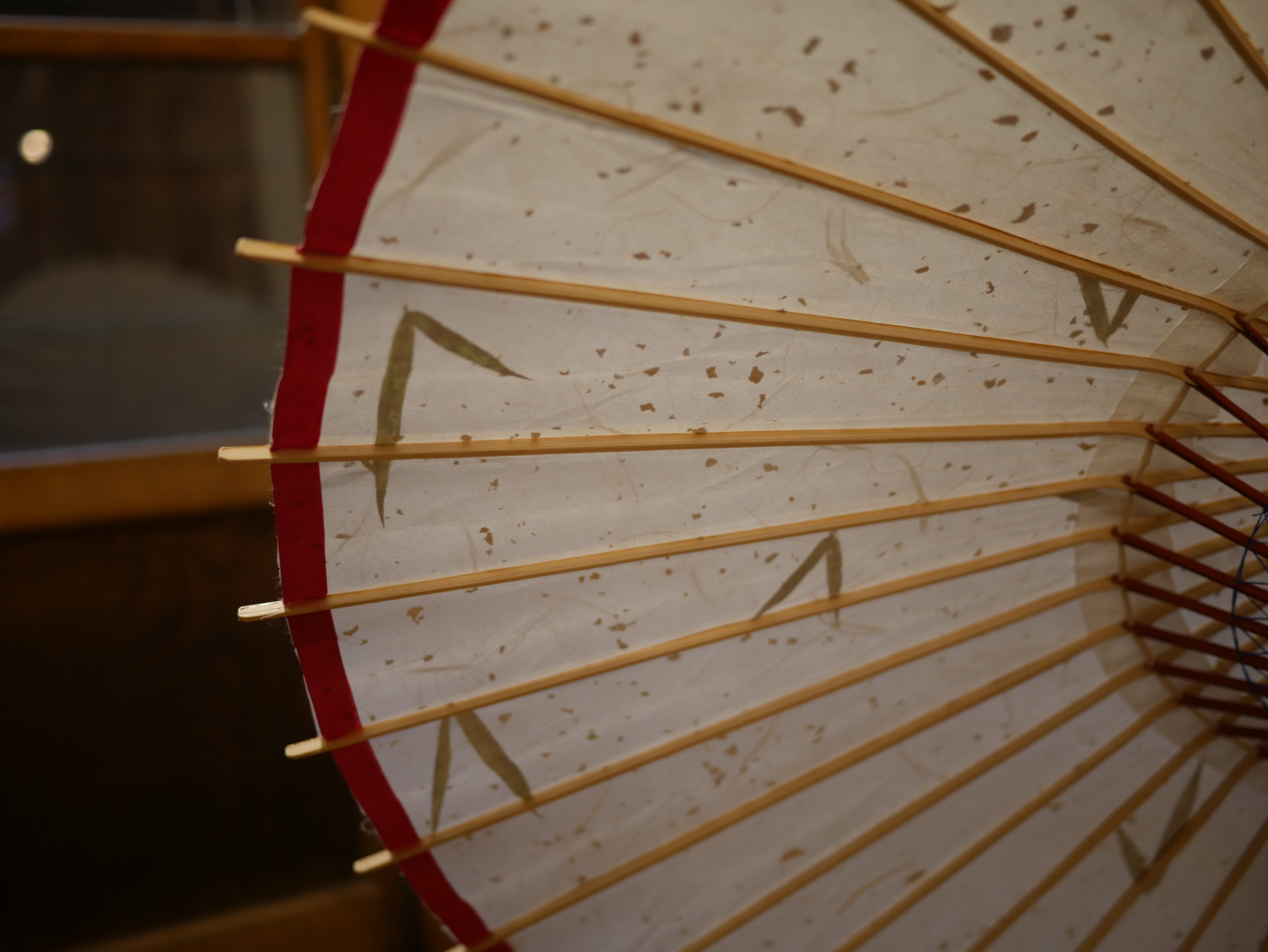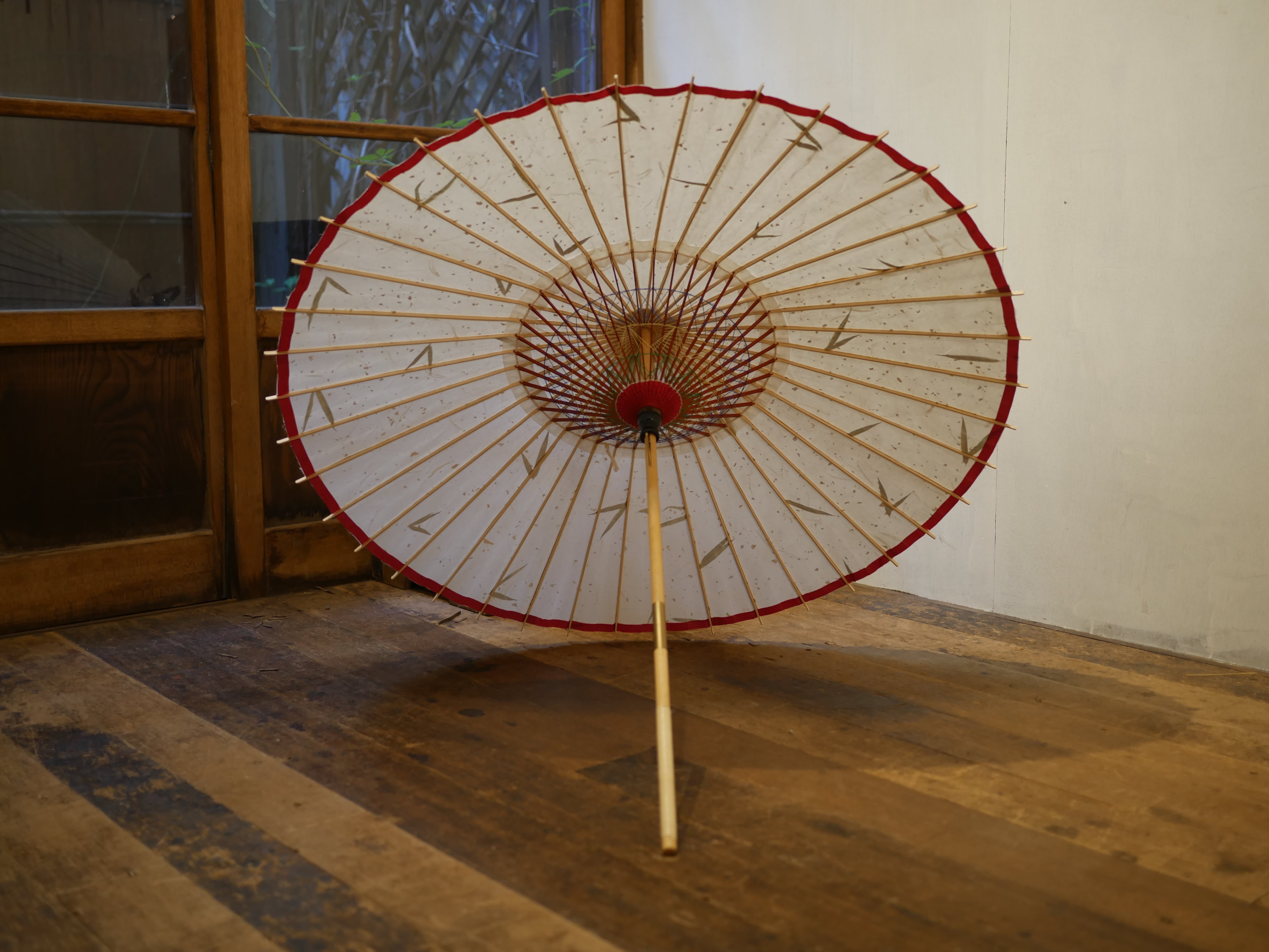 本物の笹の葉っぱが和紙に漉き込まれた日傘。