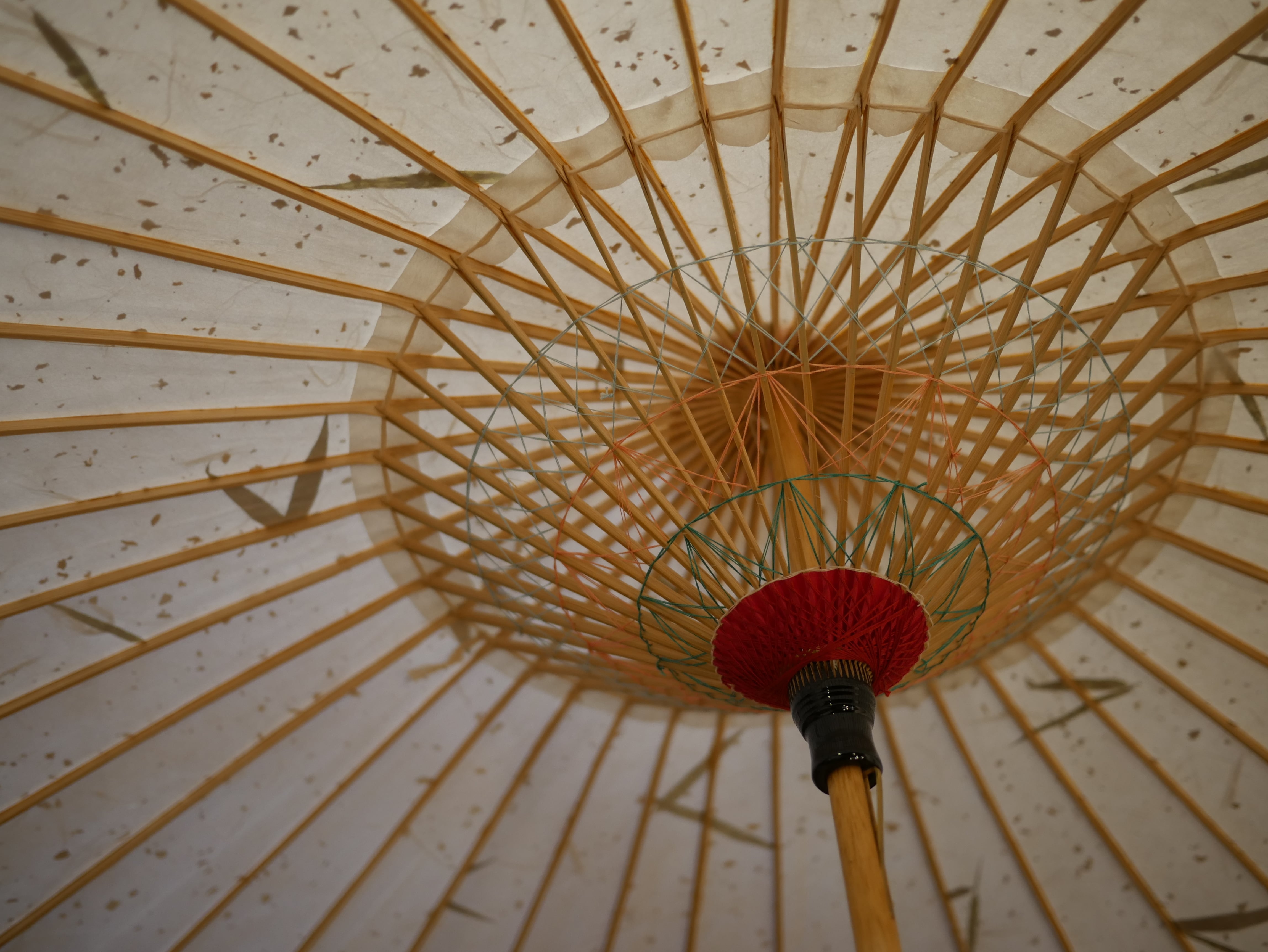 和傘の端部分の紙は鮮やかな色にしてあり、シンプルだけれども華やかさのある日傘となっております。